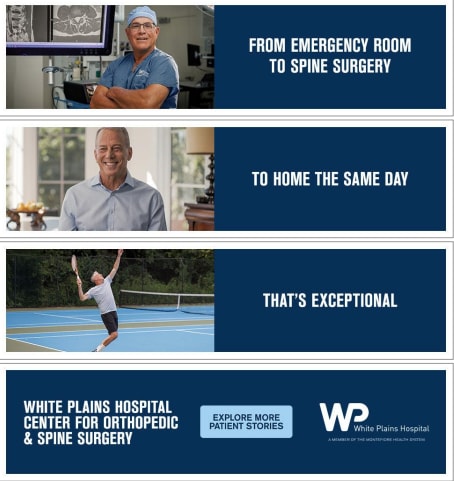 In 2025, White Plains Hospital launched a new orthopedics marketing campaign, highlighting our accomplished surgeons who are leading the way in advanced orthopedic procedures--from complex knee reconstructions and state-of-the-art hip replacements to intricate spinal operations.